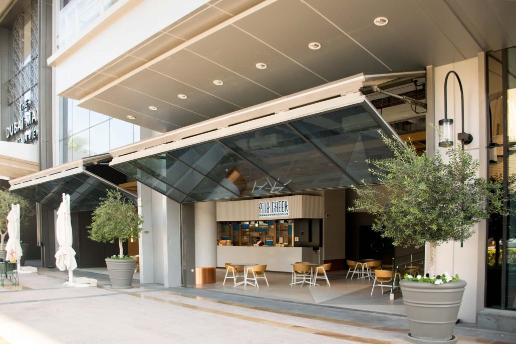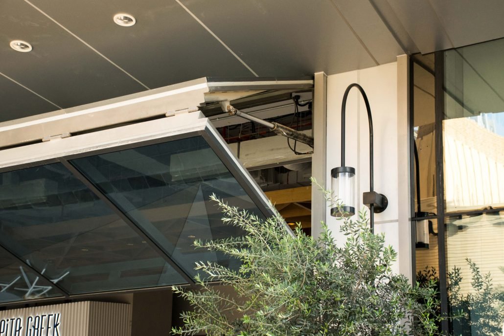 The client and the project team wanted to incorporate bi-fold hydraulic doors for the retail space with weather resistant glass finishes. The latter feature was to provide much-needed sunshade during the scorching summers months of the region. During the completion of the structural works of the project, the client and contractor were accessing options available for bi-fold doors. However, none of them offered the hydraulic feature with the bi-fold door system which was a specific architectural requirement. The hydraulic feature in the Crown bi-fold door system made it a front runner for this project.