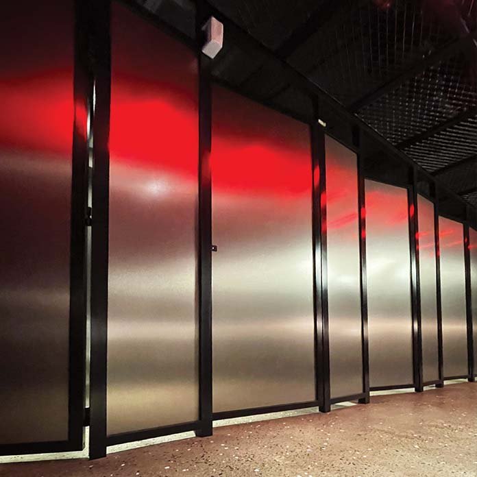 Looking at the installation pictures it is evident that a simple cubicle would not have fit in the overall project theme – which relied heavily on the use of various metal surfaces to create a functional yet robust design.