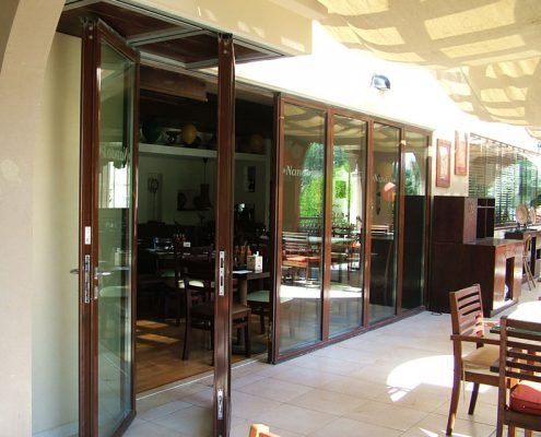 Hufcor™ Weather Resistant Glass Walls give durability and safety of positive interlocking stile and weather seal between panels. The sturdy panels are constructed as sealed double glazed units and it can integrate various height mid-rails or muntin bars to give it a French door effect. It seamlessly creates any indoor space to outdoor with ease and efficiency.