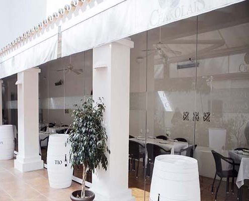 Installation does not need guides/profiles on the ground. It has individual sliding glass panels which are not connected between them, guaranteeing operational safety and simplicity of maintenance. In order to move the panels, the system uses an upper structure that guides the panels to the storage area, where they remain stored.