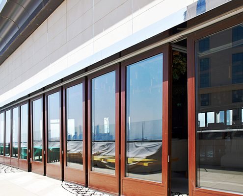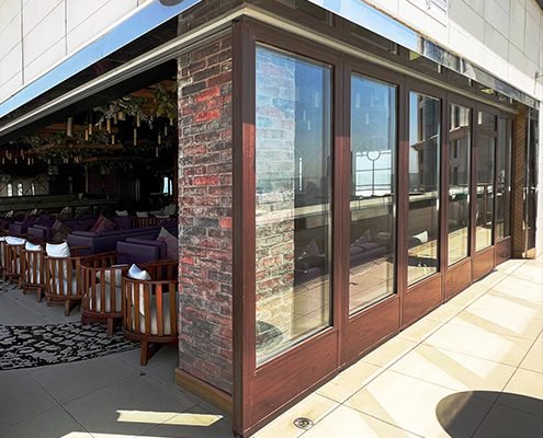 On a pleasant day, Weather Resistant Glass Walls can be moved and stacked out of plain sight, leaving the space open for everyone to enjoy the panoramic sight of Dubai while having the option to eat inside or outside. This is possible because it’s designed with an overhead suspension track that allows smooth operation of each individual panel,