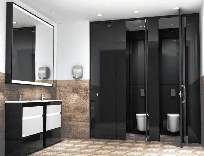 GIBCA Washroom Cubicles are used in health centers, spas, hotels. Our versatile wet area cubicles are designed for each client’s specific needs and budgets. Equipped with mechanism that makes customization easy and provides with design flexibility. Some options available with complete stainless-steel hardware mounting brackets, glass door hinges, privacy thumb turn lock and door knob.